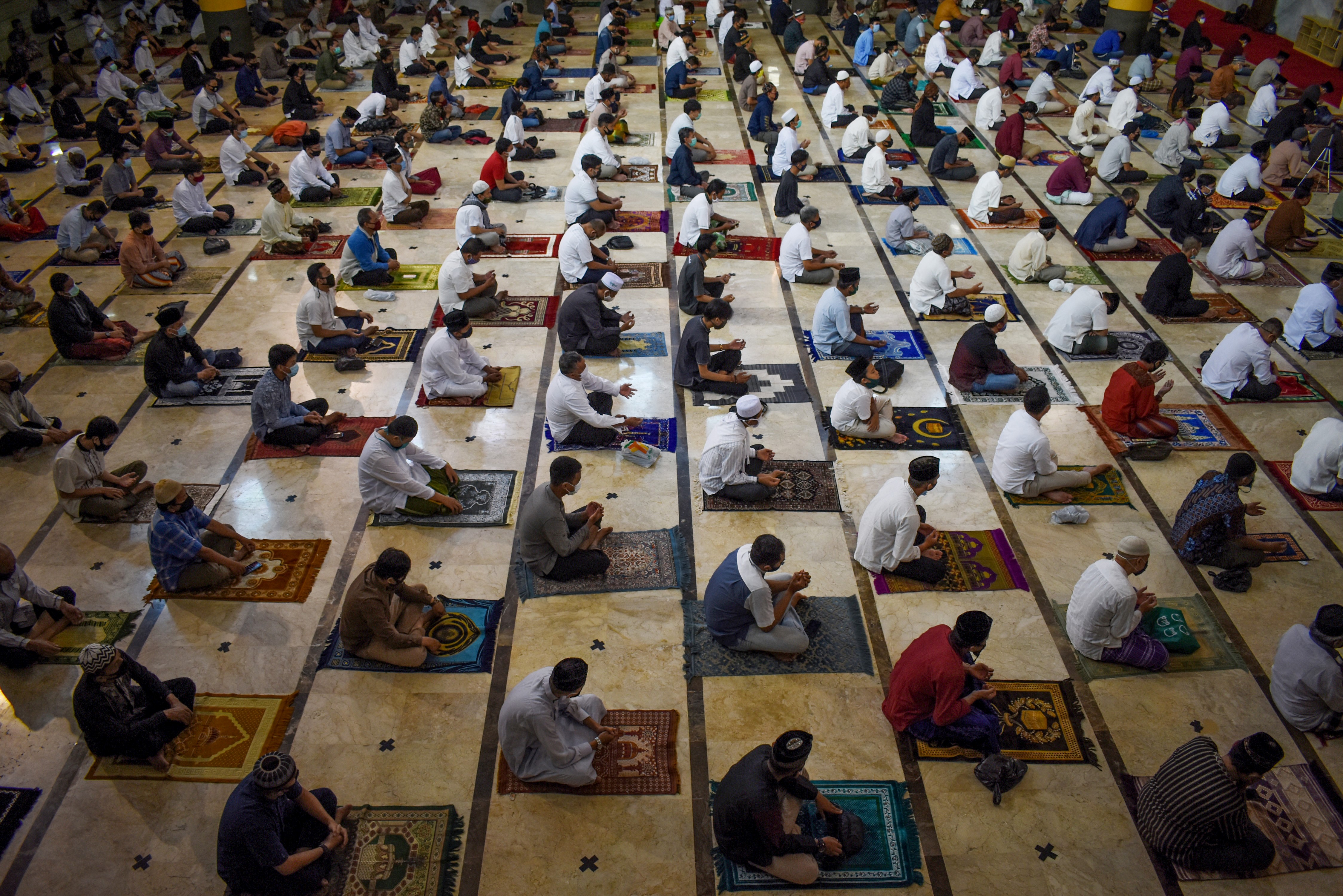 В Индонезии молящиеся соблюдали социальную дистанцию. В масках были даже дети.