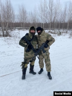 Сотрудничество с Минобороны, уточняет этот человек, проявляется в содействии 16-й бригады ГРУ. Она позволяет наемникам тренироваться на своем полигоне "Трегуляй" в Тамбове. Радио Свобода удалось найти во "ВКонтакте" несколько фотографий, сделанных одним из пользователей соцсети на этом полигоне и опубликованных в феврале 2023 года: на них он позирует с другим военным в форме без опознавательных знаков, оба держат в руках автоматы Калашникова образца 2012 года.