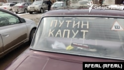 На заднем стекле автомобиля ученого из новосибирского Академгородка Игоря Просанова – надпись крупными буквами: "Путин капут". Из-за нее на Просанова нападали, спускали колеса, забирали в полицию. Полицейские и "люди в штатском", подкараулившие недавно его с женой, требовали стереть надпись. А он упорно отказывается сделать это, пишет сайт Сибирь.Реалии.